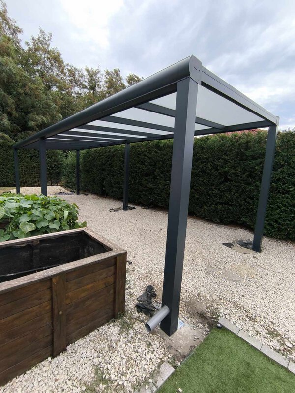 Teraszaink kiválóan ötvözik a modern dizájnt a funkcionalitással. A lábakba épített rejtett vízelvezető rendszernek köszönhetően az Álomterasz által kivitelezett alumínium terasztető praktikus és esztétikus megoldást kínál a csapadék elvezetésére.