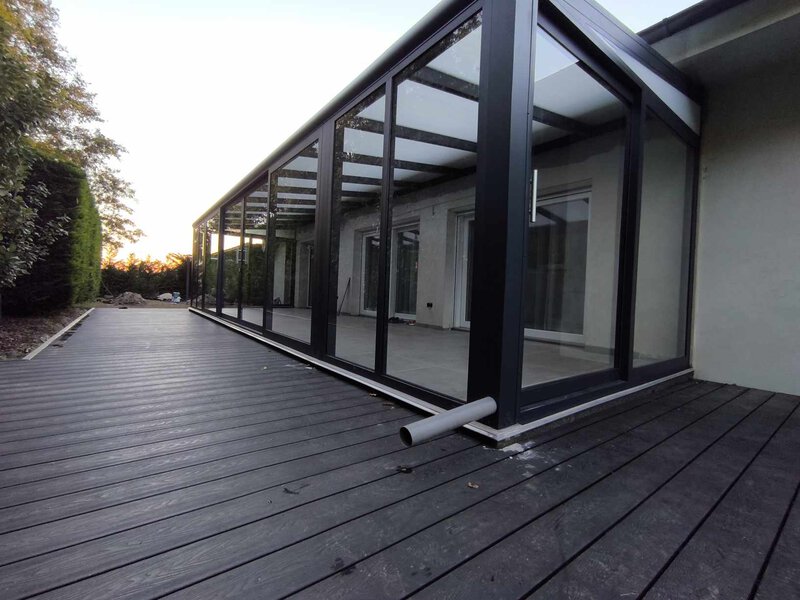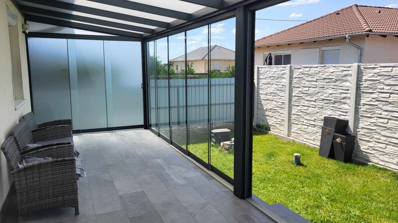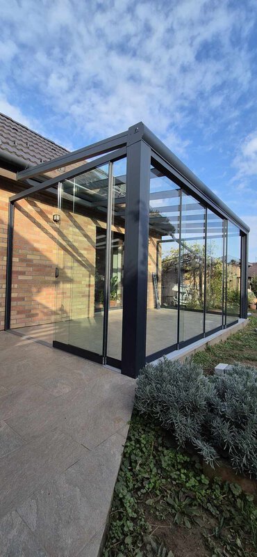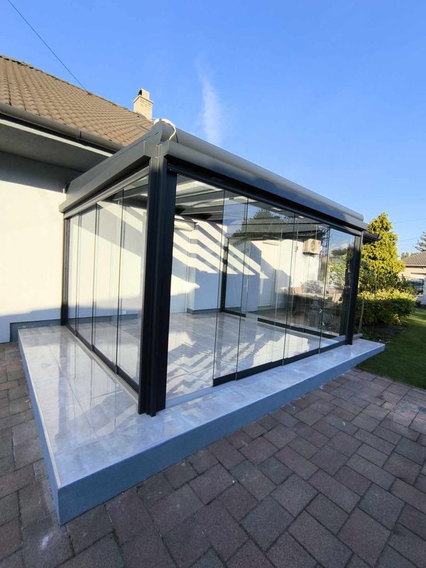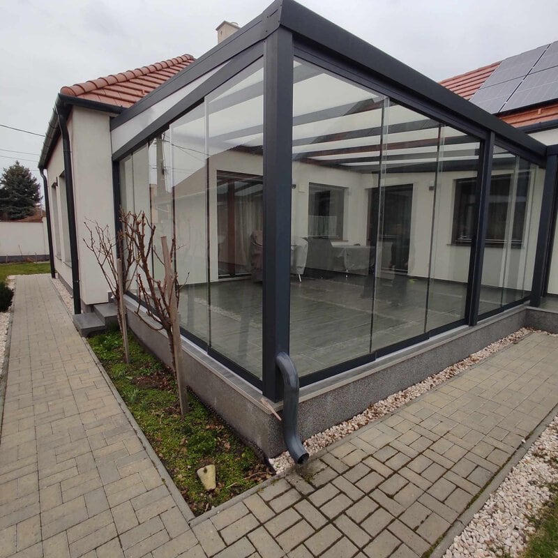Az általunk kivitelezett prémium alumínium terasz később akár télikertté is átalakítható, hiszen mindegyik teraszunkat úgy terveztük meg, hogy azt könnyedén el lehessen látni mterasz oldalfalakkal.