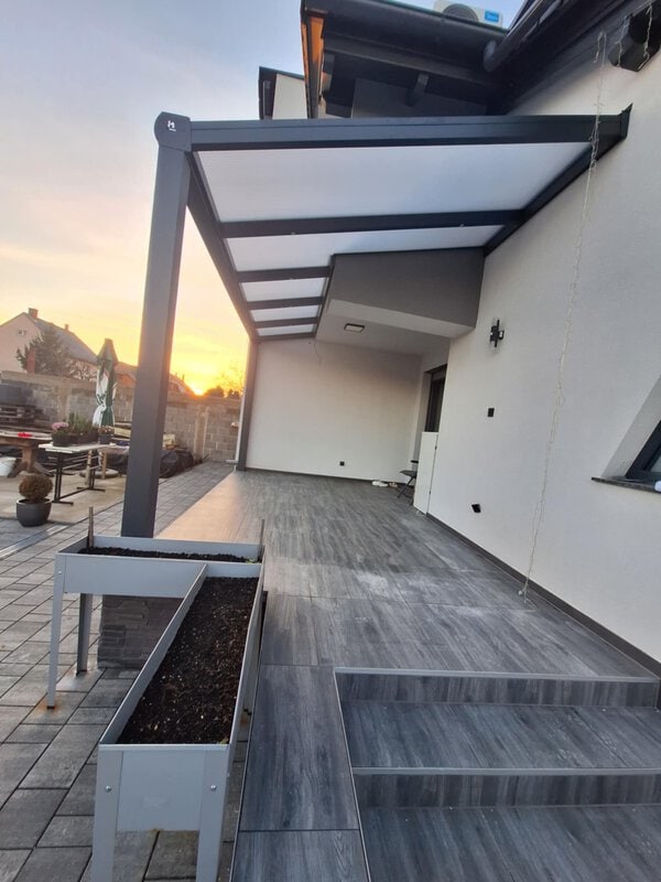 Az üvegtető modern, letisztult megjelenést kölcsönöz a háznak, így tökéletesen illeszkedik a minimalista építészeti stílusokhoz. Az üveg terasztető átlátszósága lehetővé teszi, hogy a természetes fény átjárja a teret, miközben az alumínium terasz fedett és védett marad az esőtől. Az ESG edzett üveg speciális kialakításának köszönhetően a tető biztonságos és rendkívül tartós lesz, így hosszú éveken át élvezheted az általa nyújtott előnyöket.