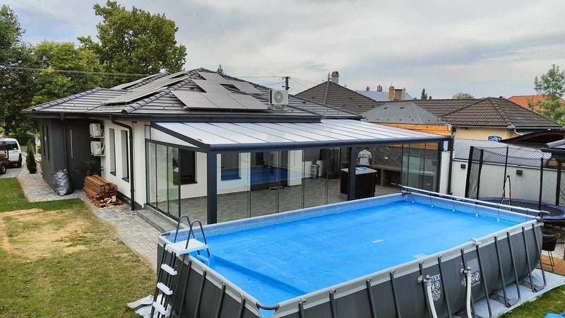 Az általunk kivitelezett prémium alumínium terasz később akár télikertté is átalakítható, hiszen mindegyik teraszunkat úgy terveztük meg, hogy azt könnyedén el lehessen látni terasz oldalfalakkal.