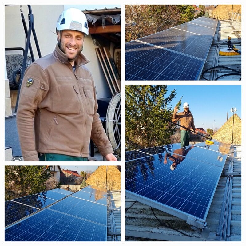 A szennyeződésekkel terhelt napelem nem pusztán kiábrándító látvány, de akár 10-20%-kal kevesebb energiát termelhet, ami hosszú távon komoly anyagi veszteséget jelent. Éppen ezért a napelem megtisztítása nem csak esztétikai kérdés. A rendszeres, kíméletes tisztítással a napelem teljesítménye optimalizálható, élettartama pedig meghosszabbítható. A speciális ioncserélt víz használatával a napelemek felülete teljesen tiszta lesz, vízfolt és mészmaradvány nélkül, ráadásul a rendszer működésében sem tesz kárt a tisztítás.